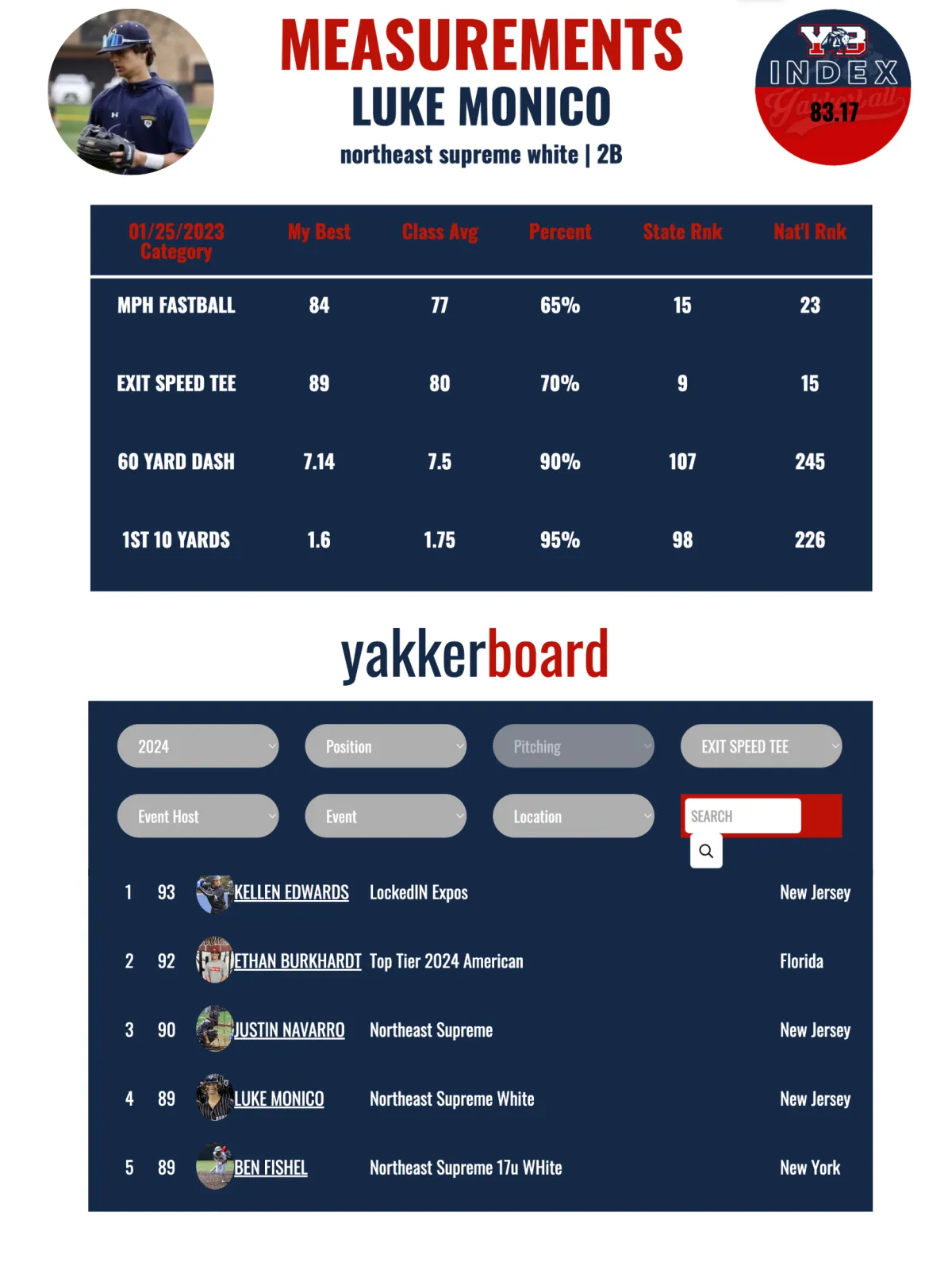 Yakkerball partnered with college coaches to ensure that everything they need to recruit players was there in just one-click. Their player profiles deliver the best of both world's - verified measurements with more customizable options than Perfect Game and Prep Baseball Report. YakkerBall is also the only profile that has a place for High School grades, stats and videos. It's priced like an app, so you can save money for the important stuff that will get you a scholarship - like lessons, strength training and lots of tacos!